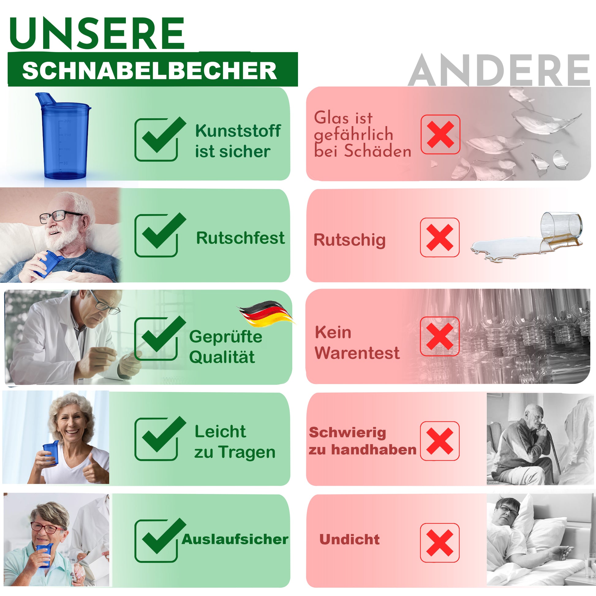 - ✅𝗩𝗜𝗘𝗟𝗦𝗘𝗜𝗧𝗜𝗚 𝗨𝗡𝗗 𝗣𝗥𝗔𝗞𝗧𝗜𝗦𝗖𝗛: Unsere Schnabelbecher sind speziell für ältere Menschen und Kleinkinder konzipiert, um das Trinken bequemer zu gestalten. Sie sind ideal für den täglichen Gebrauch geeignet.