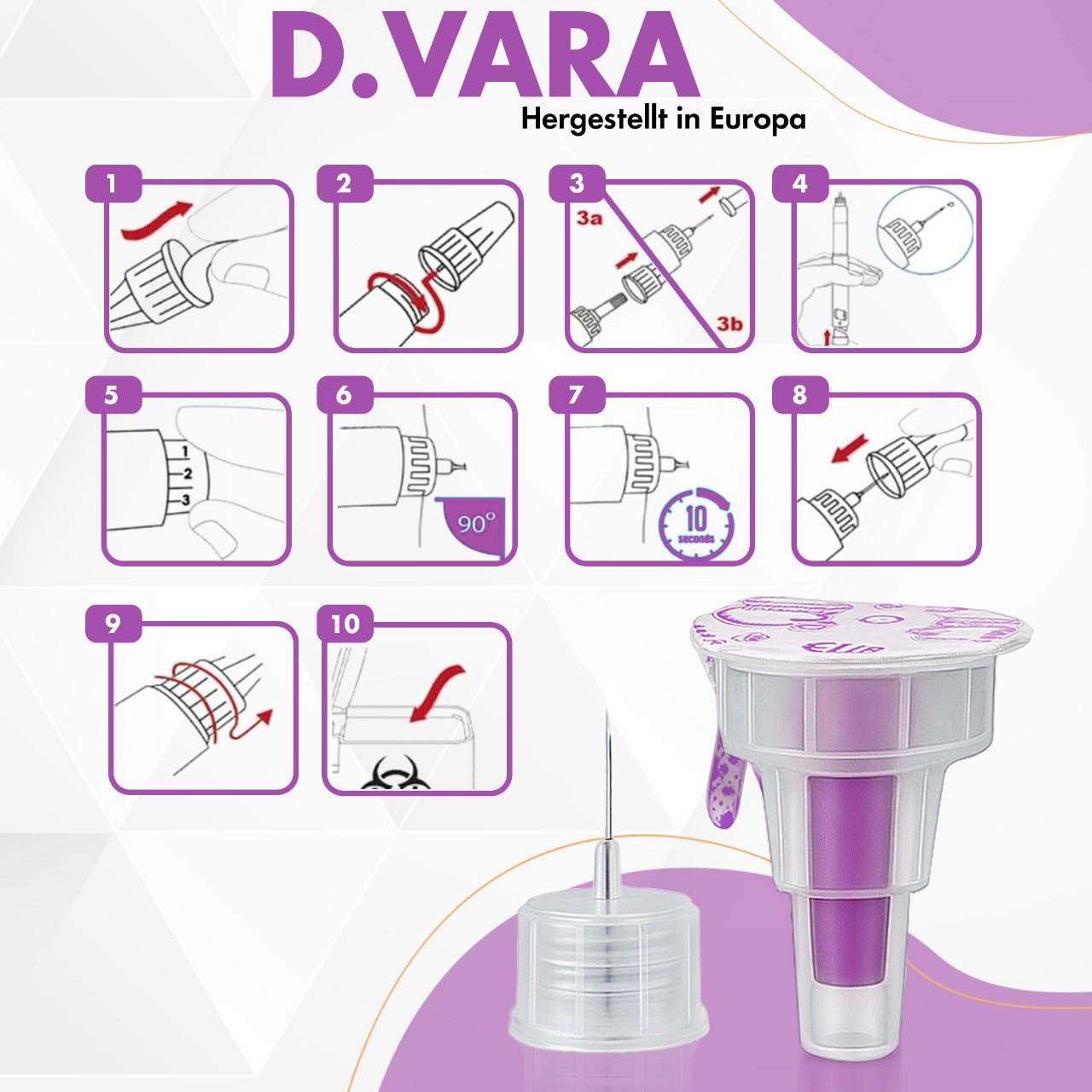 - Nadelgröße: 31G (0,25 mm x 6 mm)
