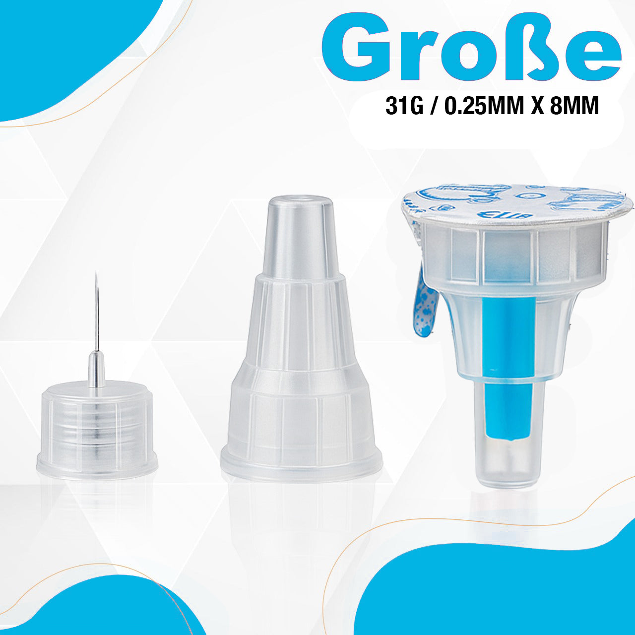 - Nadelgröße: 31G (0,25 mm x 8 mm)