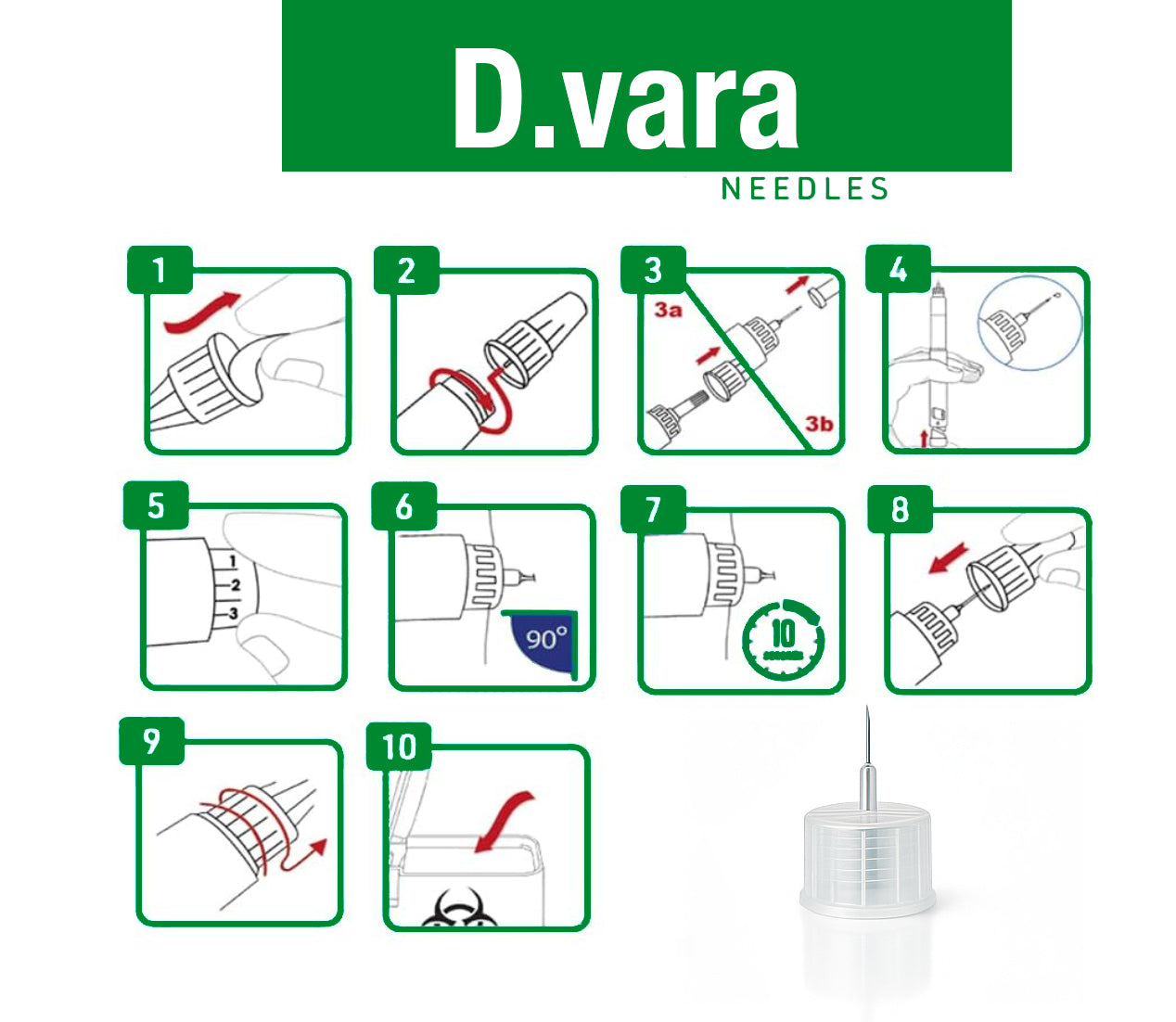 - Hygienische Handhabung: Jede Nadel ist mit einer Schutzfolie versehen, die eine hygienische Handhabung gewährleistet.